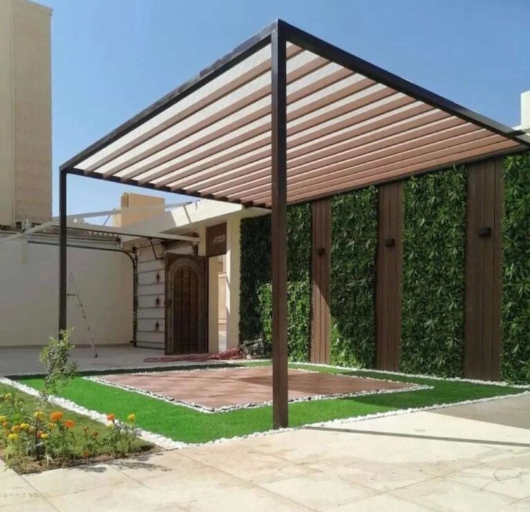 مظلات معدنية: تصميم عصري قوي ومقاوم للعوامل الجوية.